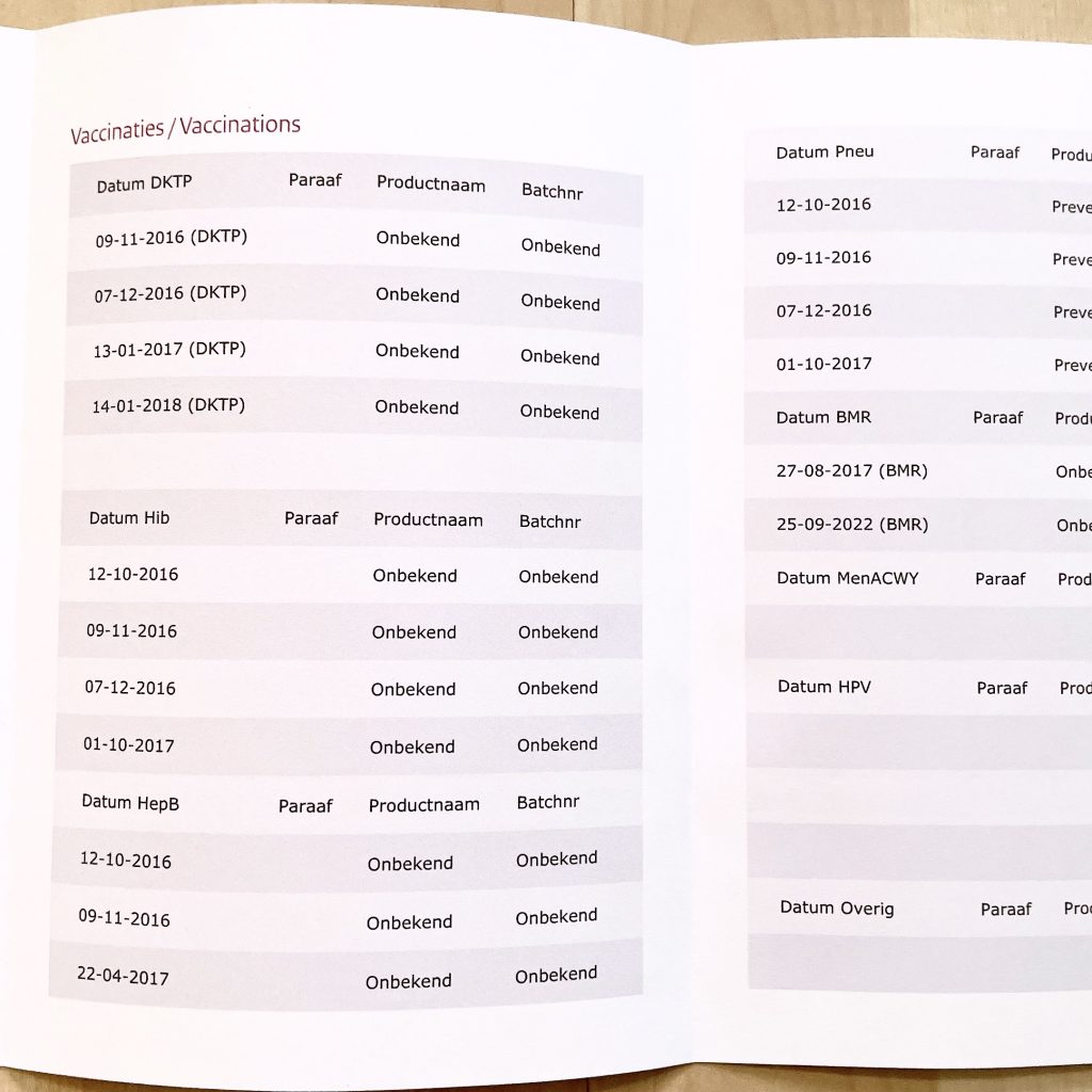 ↑こちらがオランダの「予防接種手帳」です